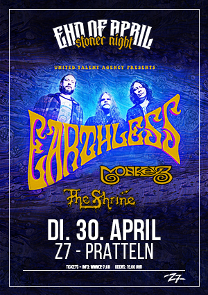 Unser jährlich im Oktober stattfindendes UP IN SMOKE Festival hat sich über die Jahre zum unschlagbaren Pflicht-Termin für die heimische Stoner-Rock Szene entwickelt... aber nur einmal im Jahr zu geilen psychedelischen Grooves abgehen ist doch doof und deshalb gibt's ab jetzt immer Ende April Stoner Rock im kleineren Rahmen an der END OF APRIL - STONER NIGHT!