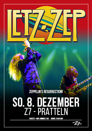 LETZ-ZEP sind keine Nostalgieveranstaltung, sondern musikalische Revolte gegen den Zahn der Zeit und das Vergessen. Sänger Billy Kulke und seine Mannen decken den kompletten Musikkatalog von Led Zeppelin ab und erweitern ihre Konzert-Setlisten regelmäßig um die eine oder andere Klangperle. Die Bühnen-Performance von LETZ-ZEP vermittelt einen authentischen Eindruck vom Schaffen der Rock-Ikonen und begeistert Unbedarfte wie Szene-Veteranen gleichermaßen. Nur wenige Tribute-Bands schaffen es, ihren Vorbildern in Show, Sound und Outfit tatsächlich nahe zu kommen. Die britischen LETZ-ZEP gehören zweifelsfrei dazu.