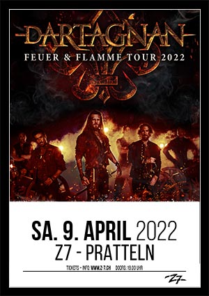 Das Konzert von DARTAGNAN vom 09.10.2021 musste leider verschoben werden! Das Konzert findet neu am 09.04.2022 statt. Die bereits gekauften Tickets sind für das neue Datum gültig.