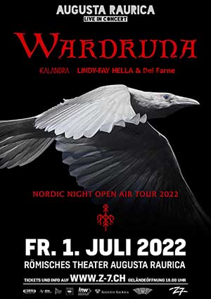 Mit Beiträgen zu den Soundtracks der Erfolgsserie «Vikings» sowie dem Game-Hit «Assassin’s Creed Valhalla» haben sich Wardruna in den letzten Jahren einem immer breiteren Publikum offenbart. Mit dem aktuellen Album «Kvitravn» (Weisser Rabe) stürmen die Norweger nun die Hitparaden im ganz grossen Stil. Im Sommer 2022 präsentieren die Bandgründer Einar Selvik und Lindy-Fay Hella ihren mythischen Folk-Sound im Rahmen der «Nordic Night Open Air Tour 2022» auch dem Schweizer Publikum. Wenn der Ruf des weissen Raben durchs Gemäuer des Römertheaters von Augusta Raurica hallt, wird sich die unvergleichliche Magie dieses Ortes so richtig schön entfalten. Die stimmungsvolle nordische Nacht wird von der aufstrebenden Pop/Folk-Formation Kalandra sowie Wardruna-Sängerin Lindy-Fay Hella mit ihrem Soloprojekt eröffnet.