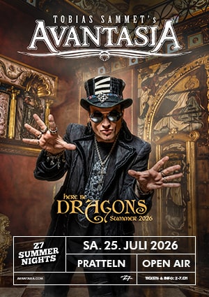 Avantasia ist zurück! Tobias Sammet kommt mit seinem gefeierten All-Star-Metal-Opera-Projekt nach Pratteln. Die „Here Be Dragons Tour“ macht 2026 einen Stop bei den Z7 Summer Nights Open Airs und lädt uns auf eine fantastische musikalische Reise zwischen Realität, Traum, Übermut und Melancholie ein.
