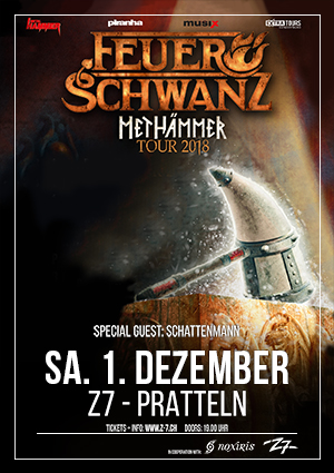 Spass als kollektive Selbsttherapie? Ja, es wirkt! Anders lässt sich der seit bald 15 Jahren andauernde Erfolg der Gruppe Feuerschwanz nicht erklären, die wie keine zweite hintergründige Satire in astrein Festival-tauglichen Sauf-Humor verpackt. Feuerschwanz, das ist komödiantisches Folk-Rock-Theater zwischen „Ritter der Kokosnuss“ und EAV. Als wilde Raubritterbande zieht „Des Hauptmanns geiler Haufen“ durch die Lande und verbreitet den Wahlspruch ihres Albums aus dem Jahr 2007: „Met und Miezen“. Am 17. August veröffentlicht das Sextett seinen neuen Longplayer mit dem süffigen Titel „Methämmer“.