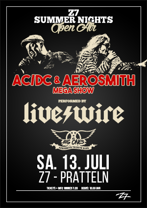 Feiert mit uns den guten alten Rock n‘ Roll zu Songs wie “T.N.T“, “Highway To Hell“, “Hells Bells“, “Thunderstruck“, “Walk This Way“, “Livin‘ On The Edge“, “Dream On“ oder “Crazy“ am Z7 Summer Nights Open Air!