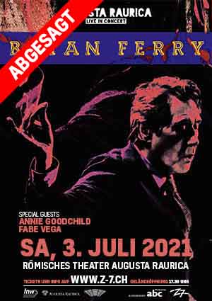 Leider müssen wir die Absage des Bryan Ferry Konzerts vom 3. Juli 2021 im Rahmen von "Augusta Raurica - Live in Concert" bekanntgeben.