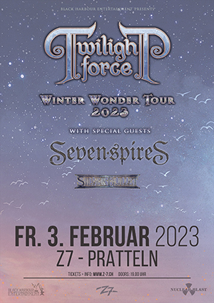 Im Oktober 2021 sollten Twilight Force ursprünglich mit ihrer „Magical Mystical Tour“ in die Schweiz kommen, um die epischen Nummern ihres dritten Albums „Dawn Of The Dragonstar“ und den neuen Sänger Alessandro Conti den Schweizer Fans zu präsentieren. Anlässlich der „Winter Wonder Tour 2023“ kann das Datum nun endlich nachgeholt werden. Am 3. Februar nimmt uns die Band im Z7 mit auf eine mystisch-musikalische Reise. Die bittersüssen Melodic-Metal-Hymnen von Seven Spires und die Symphonic-Power-Metal-Kracher von Silver Bullet bringen noch mehr Wärme in die kalte Winternacht.