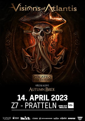 Eindringlich schöne Melodien, gepaart mit symphonischer Wucht und metallischer Härte – das bieten die Symphonic Metaller Visions Of Atlantis auf ihrem aktuellen Album „Pirates“ aus dem Jahr 2022. Im Frühjahr kommt das Quintett im Rahmen der „Pirates Over Europe Tour“ nach Pratteln. Als Special Guest haben sie die Landsleute von Autumn Bride dabei, die sich mit ihrem hochgelobten Debütalbum „Undying“ sofort in der Szene etabliert haben. Ein schlagkräftiges Austria-Metal-Package das sich Symphonic-Freunde nicht entgehen lassen sollten.