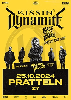Die deutsche Rock-Sensation Kissin' Dynamite lässt es krachen und kündigt mit grosser Vorfreude ihre nächste Headline-Tour durch Europa an. Nachdem sie mit „Not The End Of The Road“ bereits grosse Bühnen europaweit erfolgreich erobert haben, kehren die Energiebündel zurück, um ihre Fans mit einer atemberaubenden Show voller bekannter Radiohits sowie brandneuen Songs zu begeistern.
