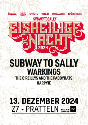 2023 überraschte der Headliner mit einer eigens für das Festival geschriebenen Hymne - die Latte liegt also eindeutig hoch für 2024. Bands und Veranstalter haben keine Zweifel, dass diese auch 2024 übersprungen werden kann. Im Lineup sind WARKINGS, die Irish-Folk-Punker THE O’REILLYS AND THE PADDYHATS und die Mittelalterrocker HARPYIE bestätigt.