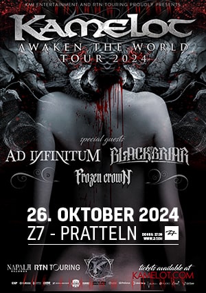 Kamelot sind zweifellos eine der einflussreichsten und innovativsten Melodic Power Metal Bands weltweit. Im letzten Jahr haben die Amerikaner mit dem brillanten Album „The Awakening“ erneut Standards gesetzt. Im Herbst kommen sie bereits zum fünfzehnten Mal zu uns ins Z7, um die Fans mit Klassikern und neuem Songmaterial zu begeistern. Als Special Guests sind die Schweizer Ad Infinitum und die Holländer Blackbriar am Start. Eröffnet wird die lange heisse Metal-Nacht von Frozen Crown aus Italien.