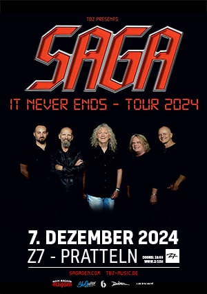 Mit der „It Never Ends Tour“ kommt die nimmermüde kanadische Neo-Prog-Legende SAGA auch 2024 ins Z7. Die Gruppe um die beiden Urmitglieder Michael Sadler (Gesang) und Ian Crichton (Gitarre) und Langzeit-Keyboarder Jim Gilmour hat in all den Jahren nichts von ihrer Popularität eingebüsst und präsentiert sich auf der Bühne frisch wie eh und je.