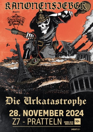 Mit „Menschenmühle“ hat das Projekt Kanonenfieber 2021 hohe Wellen geworfen. Schonungslos und wahrheitsgetreu erzählt Projektleiter Noise auf seinem Debütalbum Geschichten aus dem Ersten Weltkrieg und unterlegt diese mit melodischen Death- und Black-Metal-Tunes. Im September 2024 erscheint das zweite Kanonenfieber-Album, im November kommt Noise mit seiner Band nach Pratteln.