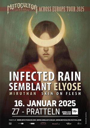 Das Motocultor-Package zieht im Jahr 2025 wieder durch europäische Clubs und Hallen. Als Headliner ist die moldawische Metal-Truppe Infected Rain am Start. Die Band um die multitalentierte Frontfrau Lena Scissorhands elektrisiert mit mitreissenden Riffs, kosmischer Elektronik, Lenas stimmlicher Vielfalt und intensiven lyrischen Themen. Auf der „Motocultor Across Europe Tour 2025“ teilen sie sich die Bühne mit der brasilianischen Vampir-Metal-Formation Semblant, dem französischen Nu-Goth-Projekt Elyose sowie Miruthan und Skin On Flesh.