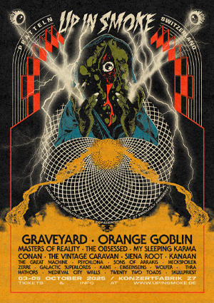 Bock auf das ultimative Stoner- und Psychedelic-Wochenende? Vom 03. bis 5. Oktober 2025 wird das Z7 in Pratteln zum Mekka der fettesten Klänge. Lass dich auf einer Reise durch verschiedenste Sounds von Psychedelic bis Sludge mitreissen. Hier wird das nächste Kapitel der Up In Smoke Geschichte geschrieben und du bist mittendrin. Hol dir jetzt dein 3-Day Ticket und sei dabei, wenn das Z7 bebt!