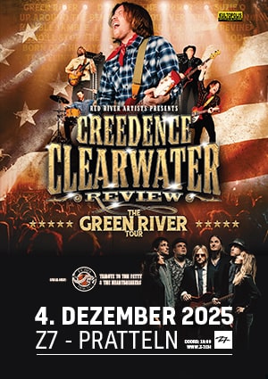 Die geniale CCR-Tribute-Band Creedence Clearwater Review kommt im Dezember 2025 wieder nach Pratteln. „The Green River Tour“ bringt ein Wiederhören mit den Songs des ersten Nummer-1-Albums von Creedence Clearwater Revival und vielen weiteren zeitlosen Klassikern der Band um das Songwriting-Genie John Fogerty. Der Roots-Rock- und Americana-Abend wird von der Schweizer Band Echo – A Tribute To Tom Petty & The Heartbreakers eröffnet.